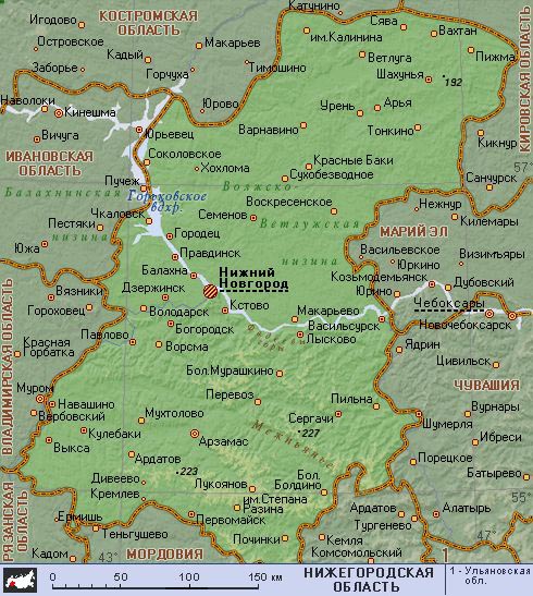 Нижегородская область (географическая карта).