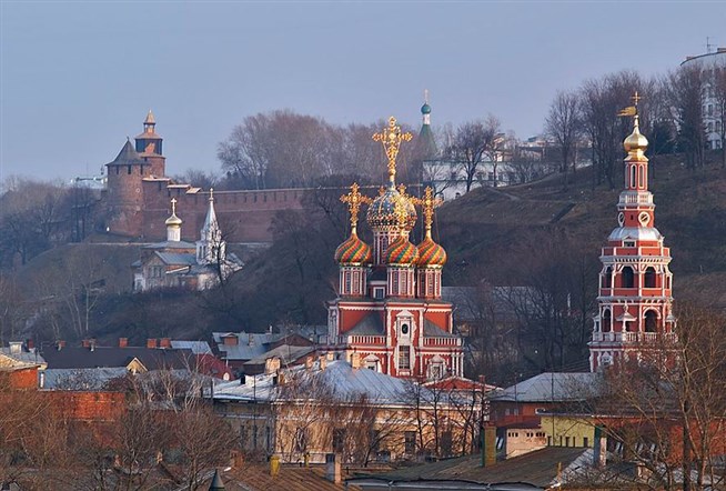 Рождественская (Строгановская) церковь. Конец 17 — начало 18 в. На заднем плане виднеется церковь Ильи Пророка.