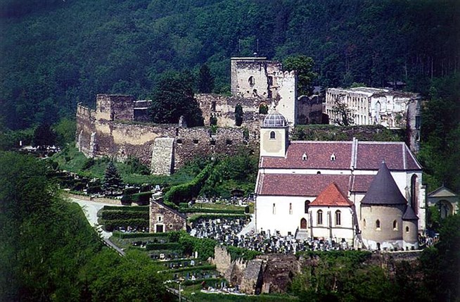Нижняя Австрия. Гарс. Церковь св. Гертруды, на заднем плане крепость Бабенбергов.