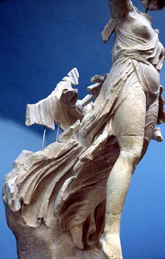 Пеоний. Статуя Ники, спускающейся с Олимпа, стоявшая перед фасадом храма Зевса в Олимпии. 5 в. до н.э. Музей. Олимпия.