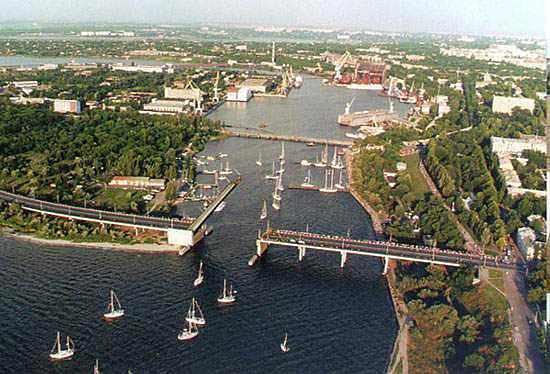 Николаев. Место впадения Южного Буга в Бугский лиман. Панорама Николаевского порта.