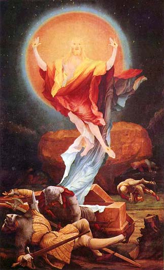 Матиас Нитхарт Готхарт (Грюневальд). Воскресение Христа. Вторая лицевая сторона, правая створка Изенгеймского алтаря. 1512-1516 годы. Музей Унтерлинден в Кольмаре.