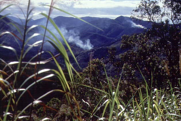 Новая Каледония. Лес, подожженный местными племенами для очистки территории под сельскохозяйственные культуры.
