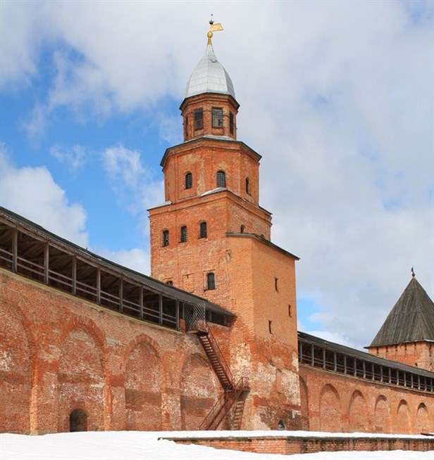 Великий Новгород. Детинец. Башня Кокуй. Фотография И. Лобанова. Март 2009 года.