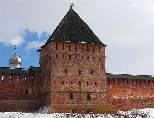 Великий Новгород. Детинец. Покровская башня. Фотография И. Лобанова. Март 2009 года.