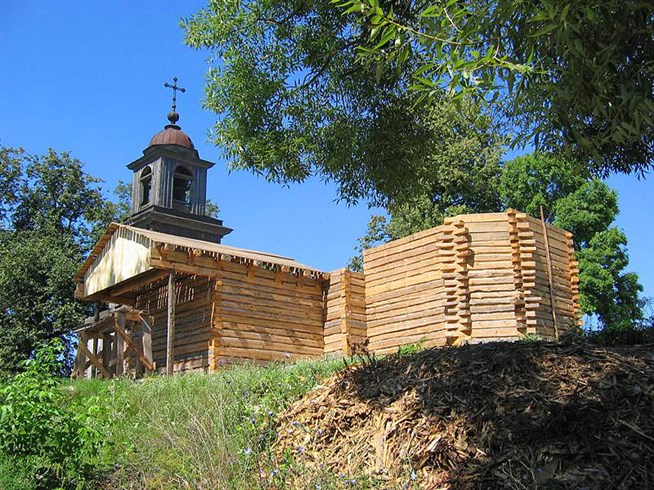Новозыбков. Церковь Рождества Богородицы. Расположена на северной окраине города на территории бывшего волостного села Людков. Храм был почти полностью разрушен. Силами местных жителей восстанавливается. Фото А. Карпова.