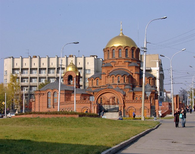 Новосибирск. Собор во имя Святого Благоверного Великого князя Александра Невского. Освящен 29 декабря 1899. Построен в нео-византийском стиле как храм-памятник устроителю Великого Сибирского пути императору Александру III Миротворцу. Первое каменное строение города. Строительство велось под руководством инженера Н.М. Тихомирова. В начале 1930-х годов храм был закрыт. После восстановления вновь освящен 15 мая 1991.