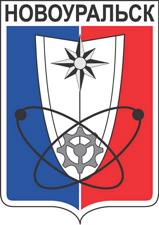 Герб Новоуральска был принят 9 июля 1979 года. Основное поле щита разделено по вертикали на две симметричные части, окрашенные в цвета государственного флага РСФСР (голубой и красный). На щите размещено изображение монумента в честь 25-летия города (белого цвета). В нижней части герба размещены орбиты с электронами и стилизованное изображение шестерни и рулевого колеса.