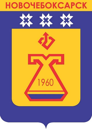 Герб города Новочебоксарск был принят 24 февраля 1993 и использовался до 2005 года. Он представляет собой изображение золотого окаймленного геральдического щита с красной стилизованной орнаментальной чувашской символикой. Герб увенчен эмблемой «три солнца». Символика в центре отображает химическую промышленность и электроэнергетику. Щит окаймлен лазурным цветом.