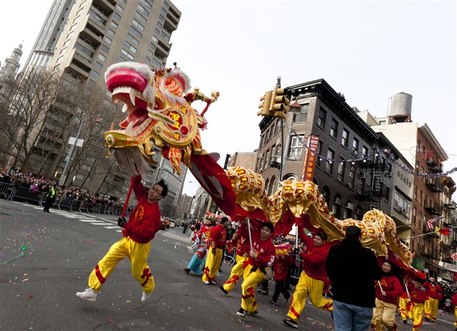 Встреча китайского Нового года в Нью-Йорке. Члены китайской диаспоры проносят дракона по улицам Чайна-тауна. 2012 год. Фото: Dan Nguyen, flickr.com