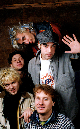 Максим Покровский (в центре) и остальные участники группы «Ногу свело». Фото Александра Прохорова.