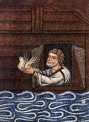 «Ной выпускает голубя из ковчега». Фрагмент мозаики конца 12 — начала 13 вв. Собор Сан-Марко. Венеция.
