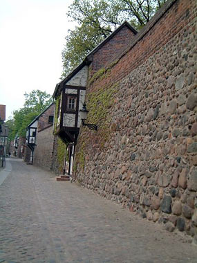Нойбранденбург. Средневековая крепостная стена со встроенными в нее домами.