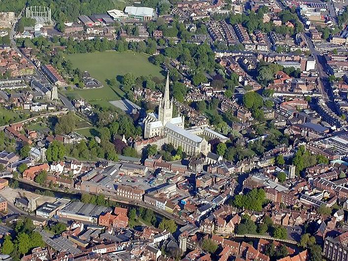 Норидж. Панорама города. В центре — романско-готический собор (11-15 вв).