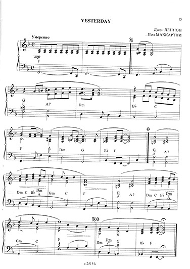 Нотное письмо. Песня «Yesterday» (1965), авторами которой являются Джон Леннон и Пол Маккартни.