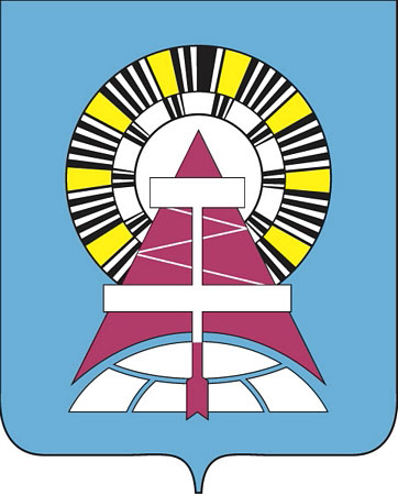 Герб Ноябрьска. В центре голубого поля стилизованное изображение нефтяной вышки и солнца. Бур, проникающий в северную часть земного шара, символизирует род занятий населения города.