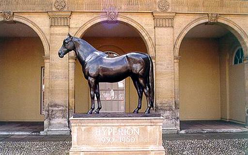Ньюмаркет. Бронзовая статуя коня Гипериона близ музея конных скачек.