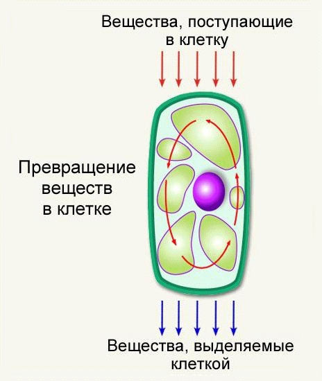 Обмен веществ в клетке включает поглощение, превращение и выделение веществ.