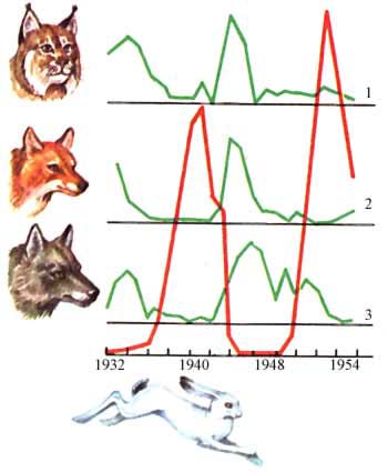 Взаимоотношения животных в природе определяет их численность в различные годы. Колебания численности хищников и их жертв получило название волн жизни.
