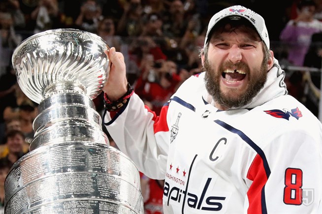 Александр Овечкин — обладатель Кубка Стэнли-2018 в составе хоккейного клуба «Вашингтон Кэпиталз». «Ти-Мобайл Арена» (Парадайс, США) 8 июня 2018 г. Фото: Gettyimages.com