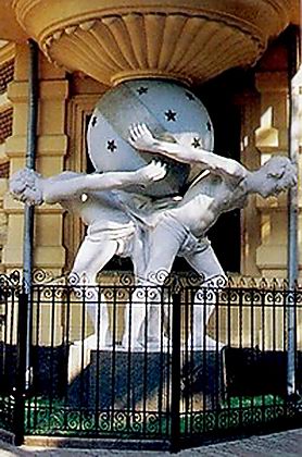 Одесса. Скульптурная группа — атланты, украшающие один из жилых домов старой Одессы.