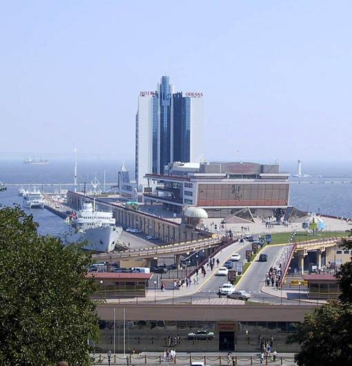 Одесса. Панорама морского вокзала (1965-1966) и гостиницы «Одесса» (2000).