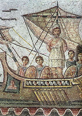 «Одиссей и сирены». Мозаика. 3 в. н. э. Национальный музей Бардо. Тунис.
