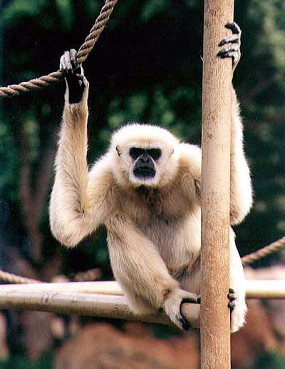 У одноцветного гиббона ярко выражен половой диморфизм в окраске: самцы черные, а самки светло-бежевые.