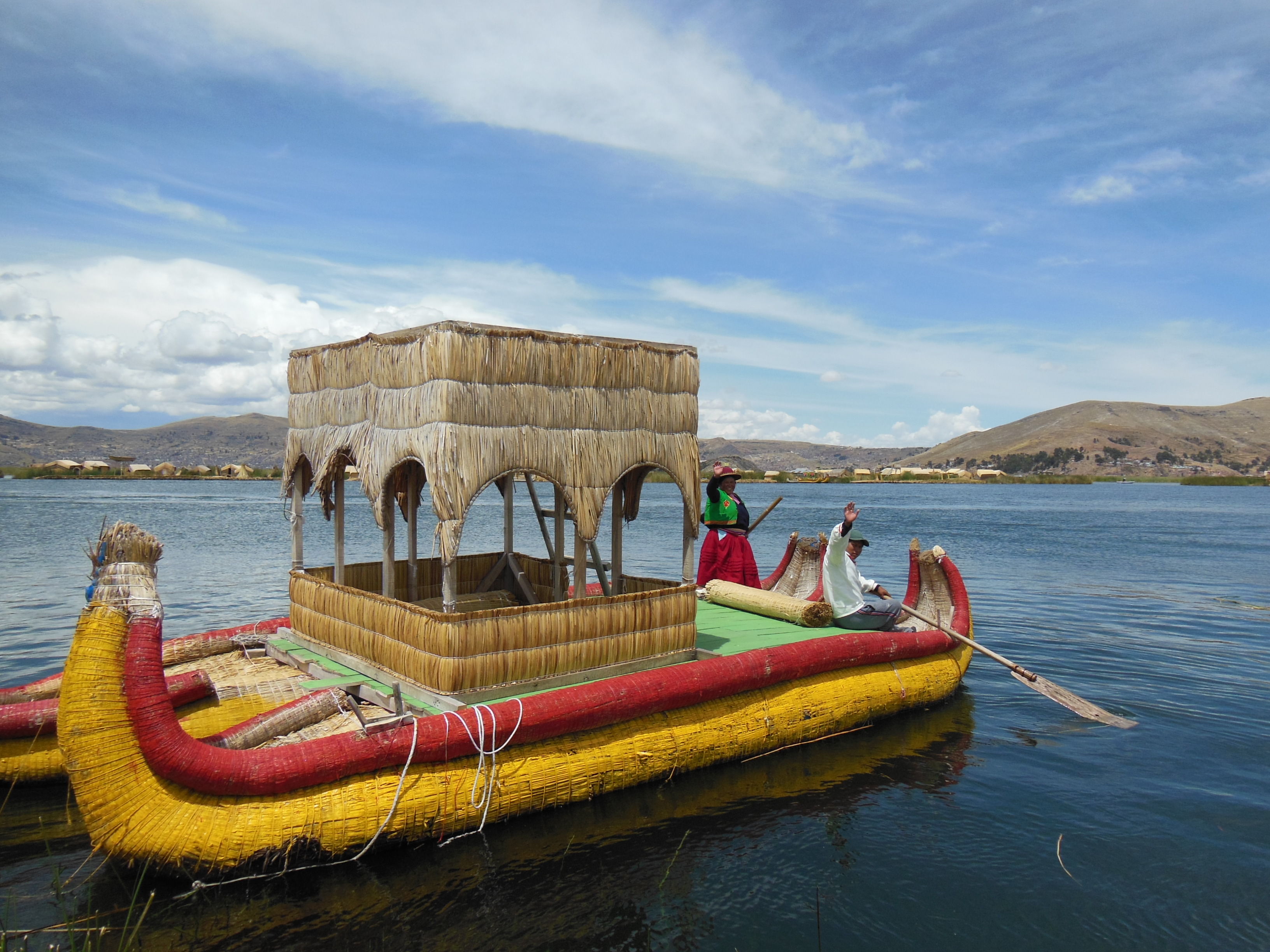 Высокогорное озеро Титикака. Лодка из сухого тростника. Перу. 2012 год. Фото: Ксения Голубь