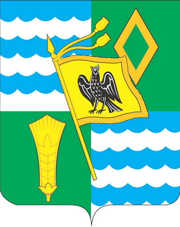 Герб Озерского района был принят 4 сентябяр 2001 года. На зеленых полях — золотой сквозной ромб и золотая головка колоса. Поверх всего золотое, на коротком древке с копейным наконечником и кистями знамя с черным жаворонком.