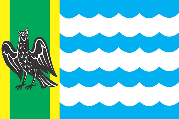 Флаг Озерского района был принят 4 сентября 2001 года. У древка — изображение черного жаворонка.