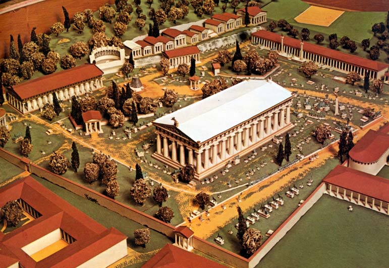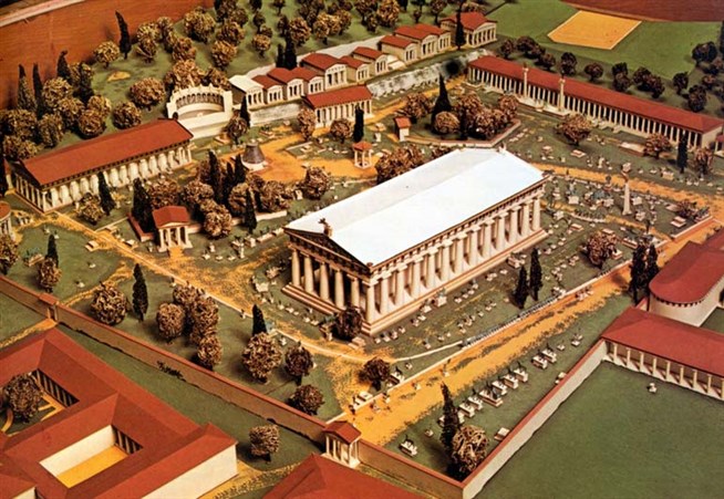 Реконструкция храма Зевса в Олимпии. Археологический музей. Олимпия.