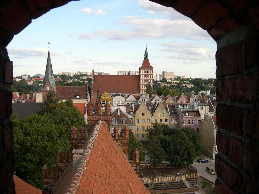 Ольштын. Вид на Кафедральный костел Св. Якуба (справа) и на евангелический костел.