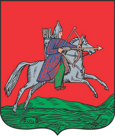 Герб Омской области, утвержденный 18 февраля 1825 года. На красное поле всадник «в азиатской одежде на белом коне, имеющий в руках лук, протянутый за стрелою, а за спиною колчан со стрелами».