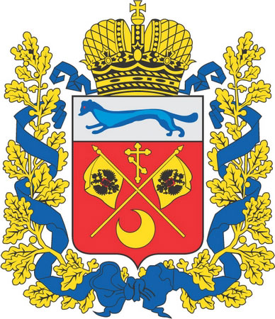 Герб Оренбургской области был принят 23 декабря 1996 года. В верхней серебряной части щита — бегущая лазоревая (синяя, голубая) куница. В нижней червленой (красной) части щита — два золотых знамени, сопровожденных вверху украшенным на концах православным крестом (с одной перекладиной в поясе и одной перекладиной в перевязь), а внизу золотым полумесяцем, на полотнище каждого знамени — российский геральдический орел образца 1856 года. Щит обрамляют дубовые листья золотого (желтого) цвета, перевитые голубой (лазурной лентой); венчает щит корона желтого (золотого) цвета. Герб повторяет герб Оренбургской губернии. Единственное изменение было сделано в отношении полумесяца, который был повернут рогами вверх, так, как он изображается на мечетях.