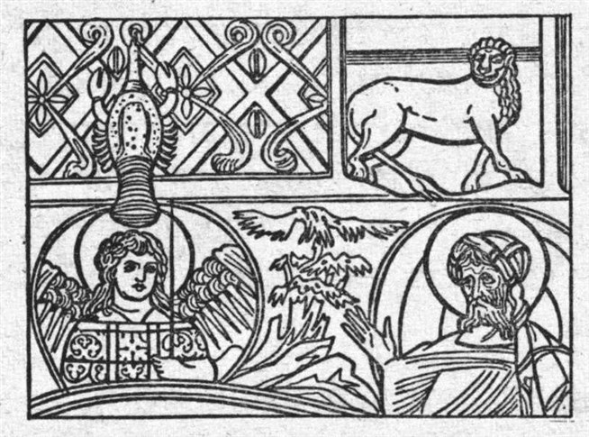 Гало Архангела Михаила, усеянное речными раками (средневековая фреска и рельеф на нижней части потолка в баптистерии в Парме)