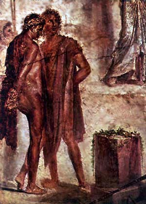 «Орест и его верный друг Пилад». Фреска из Помпей. 1 в. Национальный музей. Неаполь.