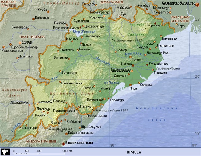 Орисса (географическая карта)