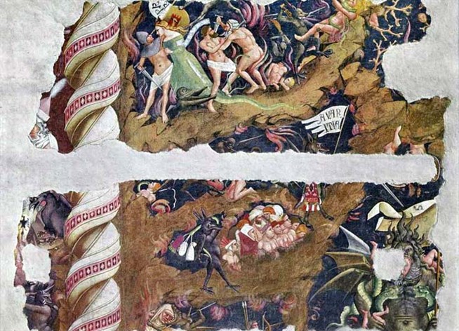 Орканья. Триумф смерти. Фрагмент. Около 1350 года. Фреска. Церковь Санта-Кроче, Флоренция.