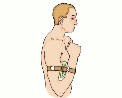 Остановка кровотечения путем максимального сгибания верхней конечности.