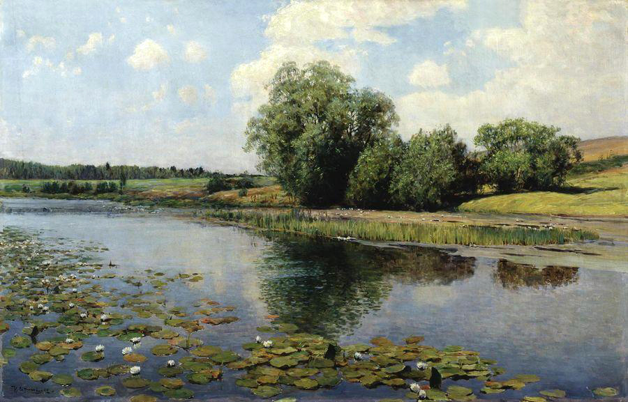 И.С. Остроухов. Речка в полдень. Купавы на пруду. 1892 год. Холст, масло. Пермская художественная галерея.
