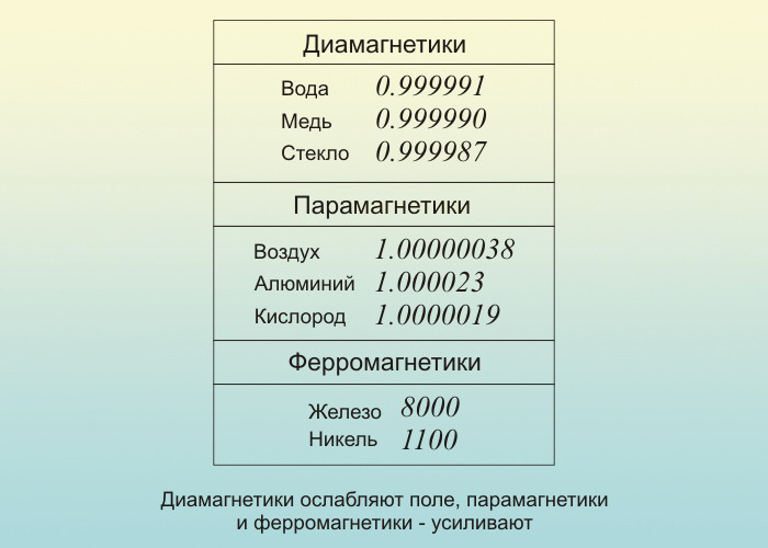 Относительная магнитная проницаемость показывает, во сколько раз в данной среде сила взаимодействия между проводами с током изменяется по сравнению с вакуумом.