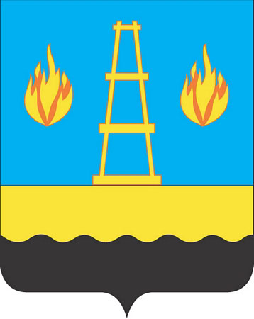 Герб города Отрадный, принятый 27 мая 2004 года на основе более раннего герба. В лазоревом поле золотая лестница. Оконечность волнисто пересечена золотом и чернью. По сторонам два золотых огня. Лестница аллегорически изображает нефтяную вышку. Огни указывают на богатство недр окрестностей города нефтью и горючими газами. Лазоревое поле герба указывает на реку Большой Кинель, протекающую в восточной части города.
