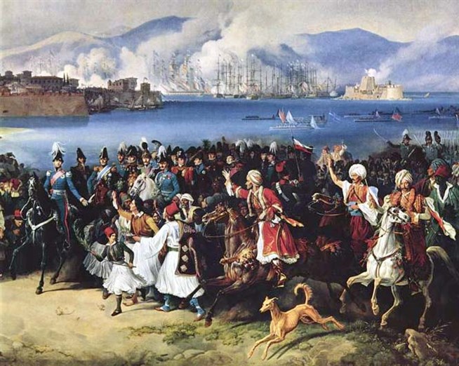 Петер фон Хесс (1792-1871). Вступление короля Оттона в Навплион. Фрагмент. 1835 год. Холст. Новая Пинакотека, Мюнхен.