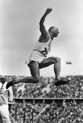 Золотая медаль в прыжках в длину Джесси Оэунса на Играх в Берлине (1936).