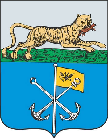 Герб Охотска был утвержден 27 октября 1790 года. В верхней части щита иркутский герб, в нижней части в голубом поле два якоря и над ними «штандарт, в знак того, что в сем городе находится порт».