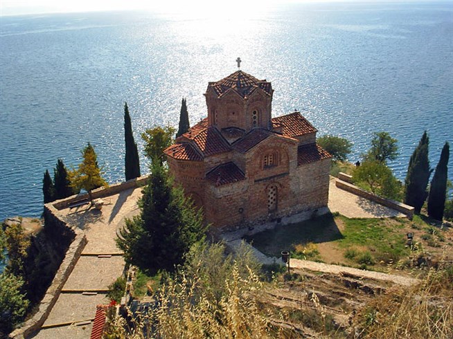 Охрид. Церковь Св. Иоанна в Канео расположена на высоком берегу Охридского озера.