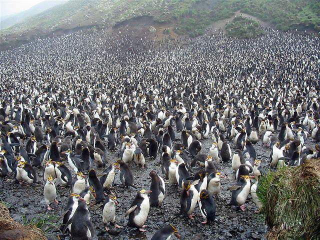Колонии пингвинов шлегеля могут насчитывать до 500 000 пар.