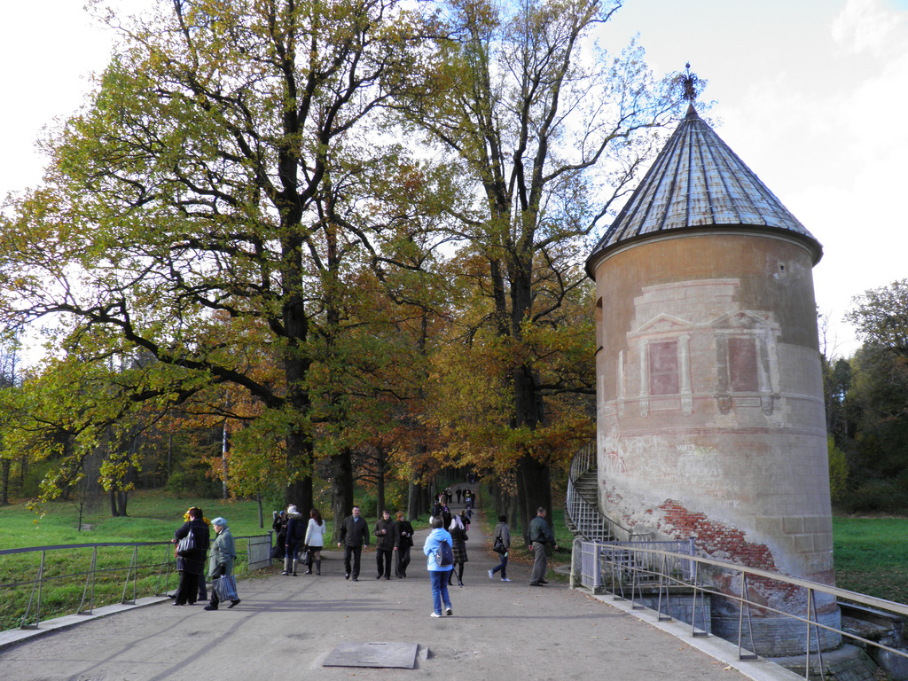 Павловск. Пиль-башня — парковый павильон в два этажа с конической башней. 1797 год. Архитектор. В. Бренна. Башня служила местом отдыха для прогуливающихся по парку. Мост был выстроен в 1807-1808 годах по проекту А. Воронихина. Фото: Alexey Ivanov, flickr.com