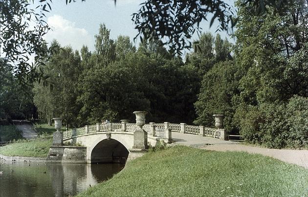 Павловск. Однопролетный каменный мост (1807-1808 годы, архитектор А. Воронихин, каменных дел мастер П. Висконти) сооружен в средней части долины реки Славянки — поэтичного уголка Павловского парка.